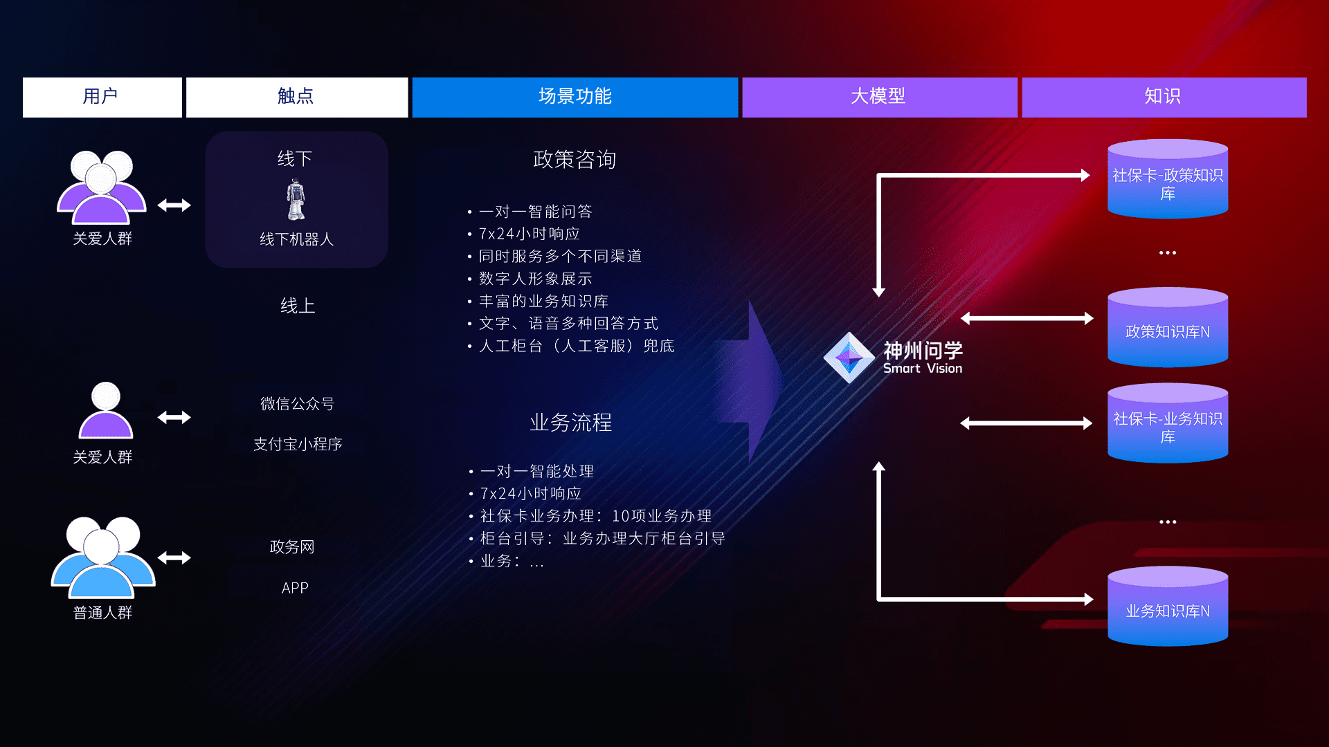 • 利用大语言模型+RAG技术,,,支持多轮对话,,,,可识别多种同义词、、近义词,,,精准理解关爱人群语义快速输出结果。。。